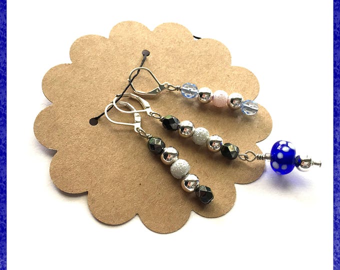 L37 Closable Removable Stitch Markers Set Of 3 Blue Gray Pink And Silver Glass With Blue And White Spotted Lampwork Sewing Fiber Knitting Deshpandefoundationindia Org